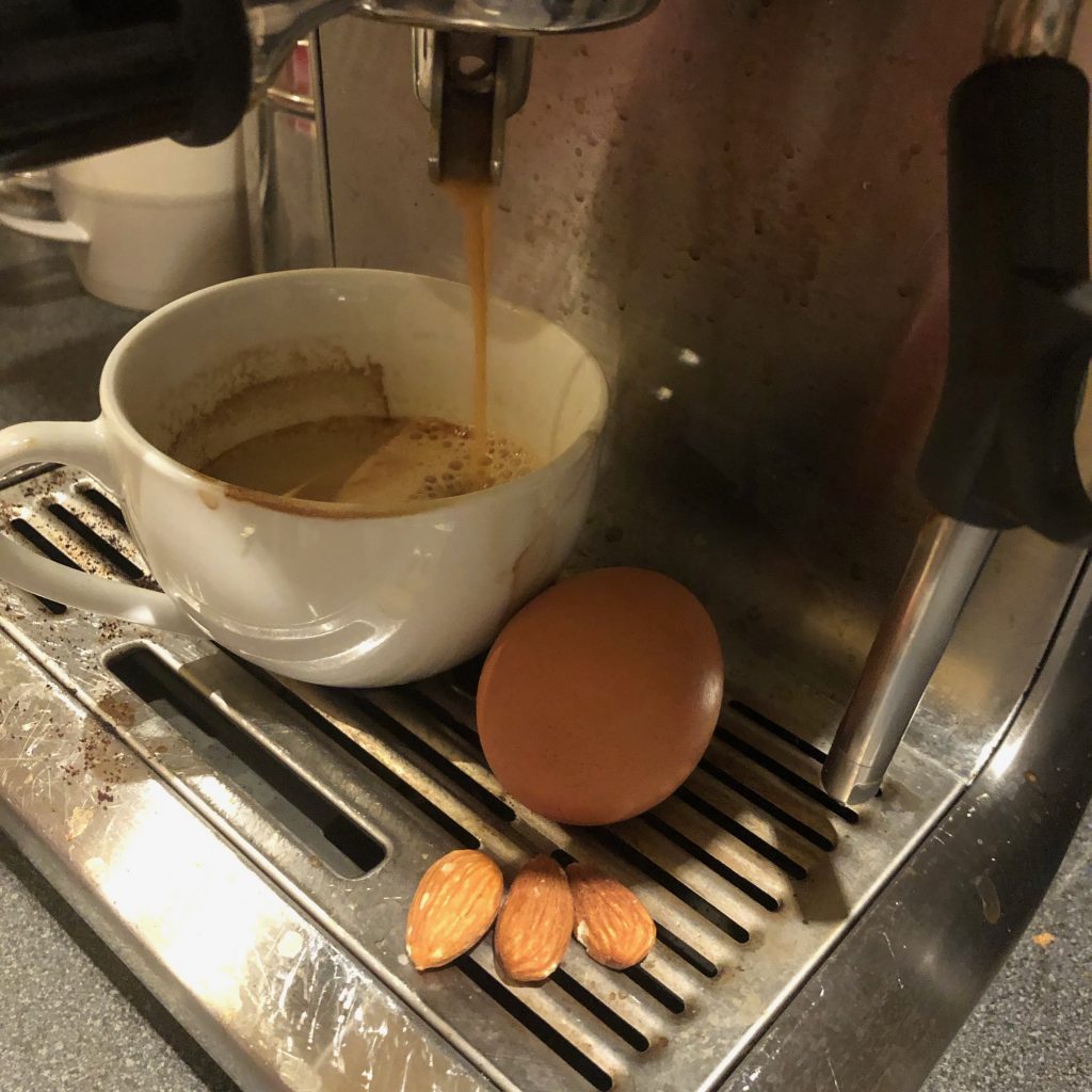 I use coffee and tea to smuggle spoonfuls of sugar into my gob! From now on, my task is to bring this drink into my block allocation, and combine it with protein and fat. From the photo above, you’ll see that 1 spoonful of sugar, need an egg and 3 almonds to make it a complete snack, or a block.