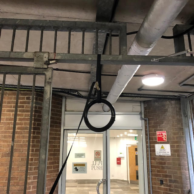 WE shared a set of rings with kate using one for a ring row and i used 1 for a pull up. I should say that you really ought to have two rings each. It looped quite well around this sturdy metal fence