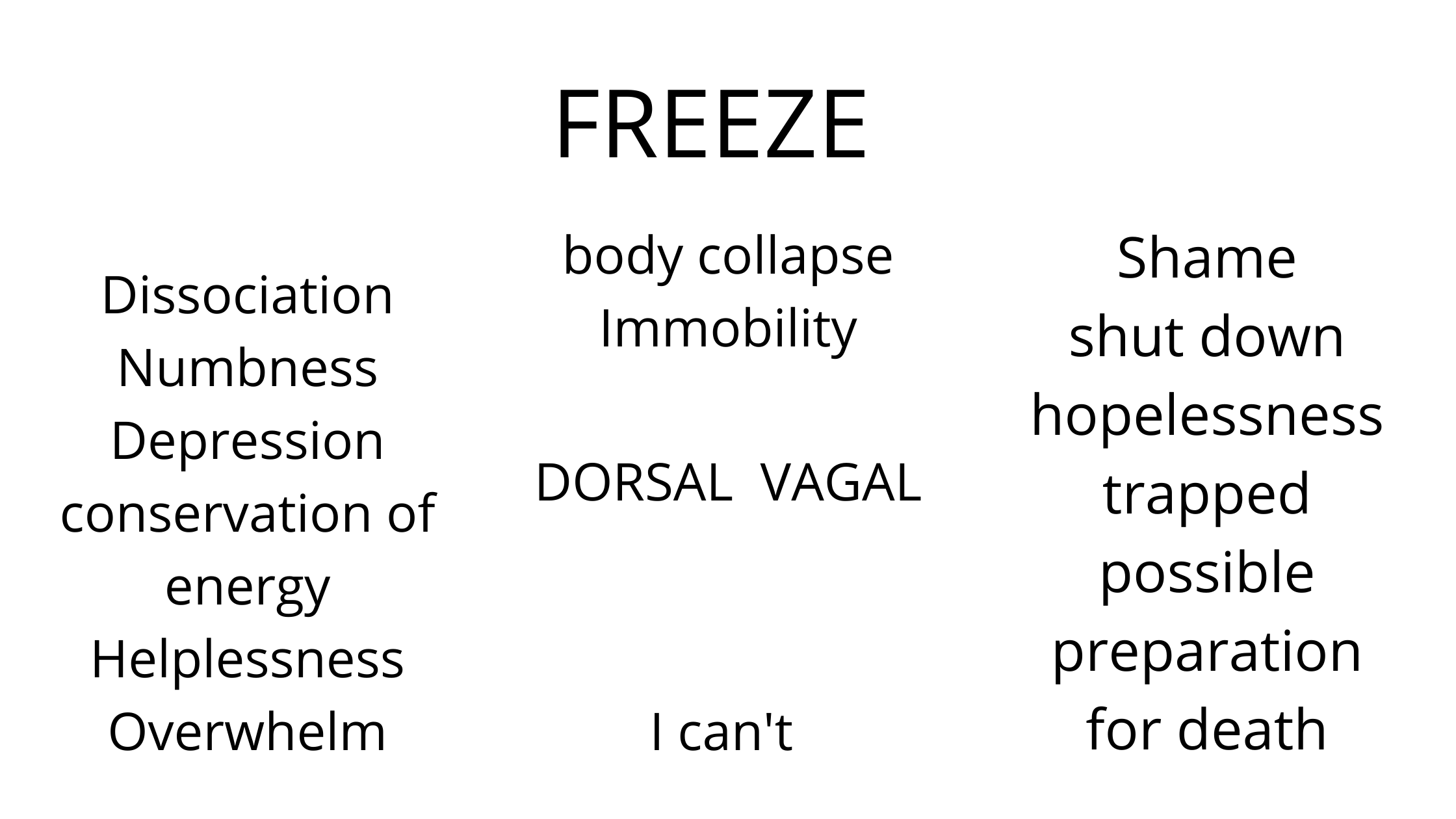 The consequences for human beings of not discharging the freeze or immobilisation state are quite nasty as this image summarises.