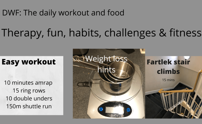 The DWF, or daily workout and food is aimed at giving you some basic conditioning ideas. For some it’s the only thing they do, for many it’s just part of your training day.