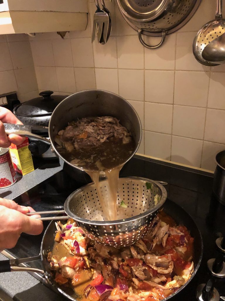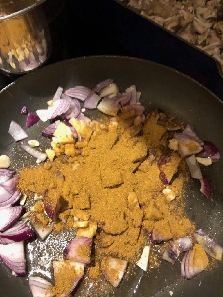 Using yesterdays pulled chicken and some stock made from the bones, it was chicken curry time. 93g of rice (3 blocks) 120 g of chicken (4 blocks) buried in a sauce of stock and tomatoes, plus tomato puree with onions, ginger, toasted and crushed cloves, coriander, garlic, curry powder and a bit of coconut milk powder.